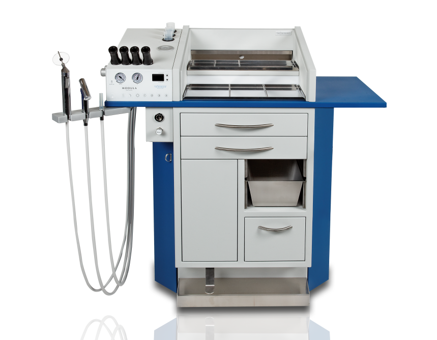 Standardvarustusse kuuluvad elektrooniline juhtpaneel, pöörlev õlg erinevate töövahendite hoidmiseks, integreeritud peeglisoojendi (ventilaatoriga), täielikult avanevad ning vaikselt sulguvad sahtlid, jäikade endoskoopide desinfitseerimispesad, akrüülklaasiga kaetud kaks töötasandit instrumentide hoidmiseks, jalapedaaliga avatav prügikast.
